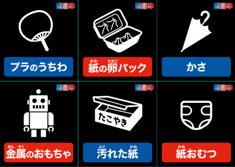 左は使用した6枚のパネル。 正しい分別ができればミッションクリア